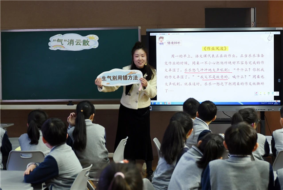 首先是两节四年级心理课展示,第一节是上海市七宝实小的心理老师田成成老师执教的《“气”消云散》,田成成老师以情绪管理为核心,通过生动有趣的活动设计帮助学生学会合理表达与调节情绪。第二节是江川小学的方芝老师执教的《解作业之困》,方老师围绕习惯养成,通过趣味讲解与互动实验,帮助学生认识习惯的重要性,结合生活案例,探讨如何运用“提醒与奖励”策略解决习惯困扰。