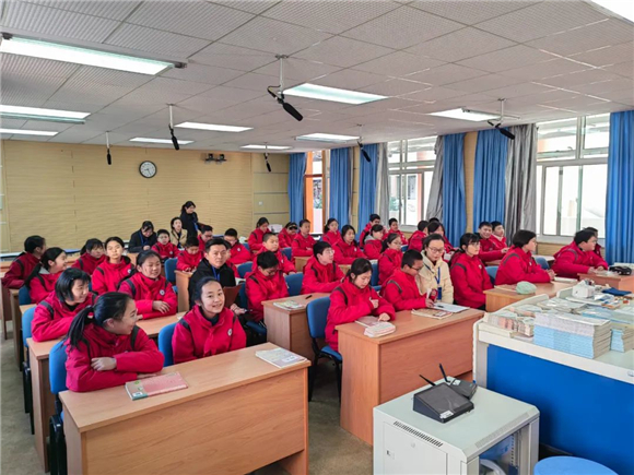 两节课结束后,金川校区金海虹副校长、教导处计新明主任、学生处张宇副主任及其他行政干部和来自各班的34名家长代表参加了本次教学开放日的研讨活动,本次教学专题研讨会由金海虹副校长主持。
