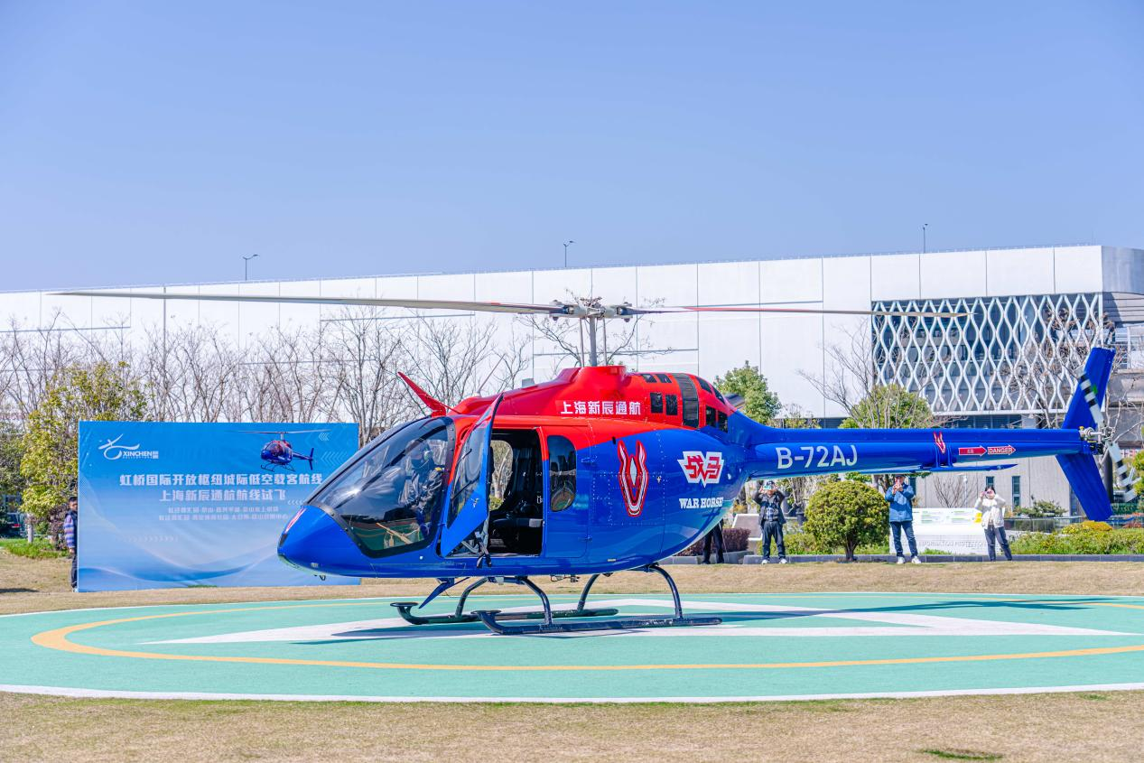 3月18日,两架直升机分别在虹桥国际中央商务区起飞,执行虹桥国际开放枢纽城际载客低空飞行。这是长三角城际载客航线网络化、多航线运行的首飞突破。