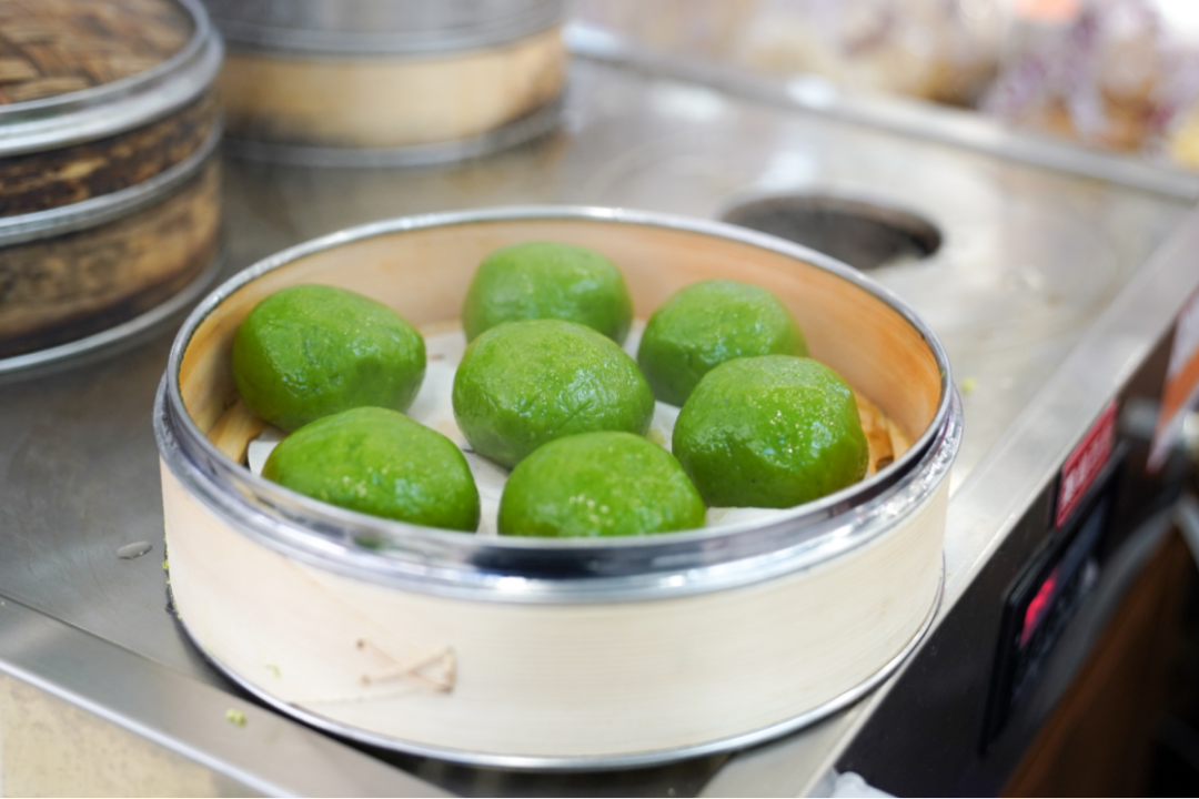 泰康食品的摊位前,同样是一派忙碌景象。师傅们采用更为传统的制作方式,将生的青团皮和馅料包裹在一起,放入蒸笼。12分钟左右,新鲜出炉的青团带着诱人香气呈现在顾客面前。泰康今年别出心裁地推出了麦乳精豆沙、咸菜豆瓣、叉烧香菇等新口味,每个青团重70克,引得市民前来尝鲜。