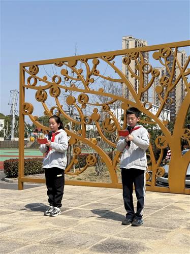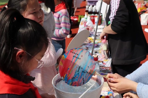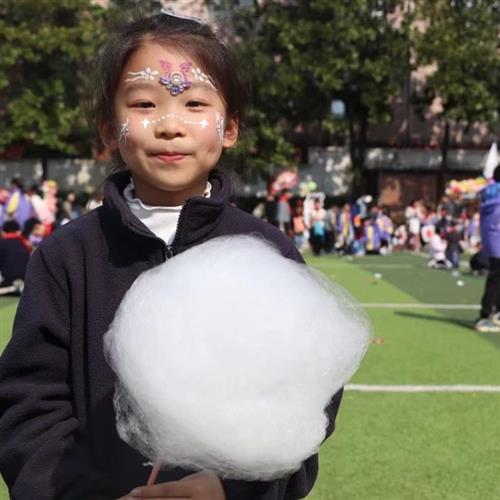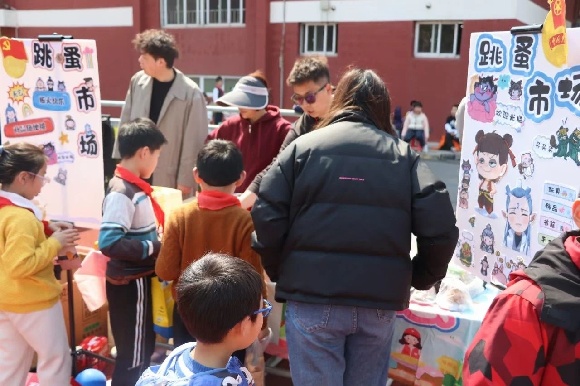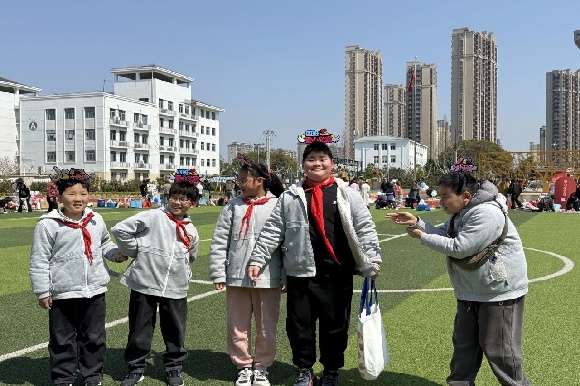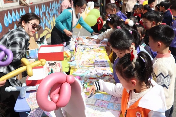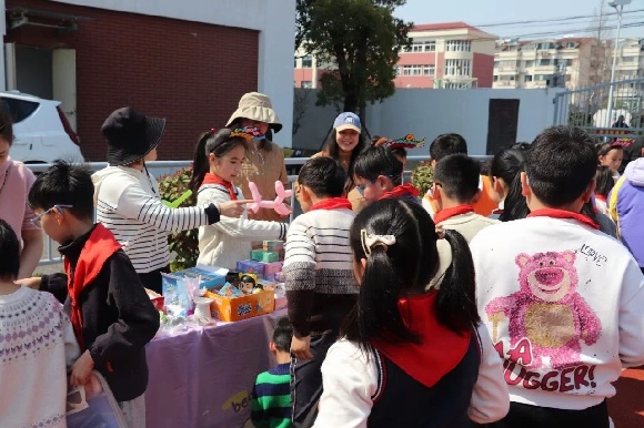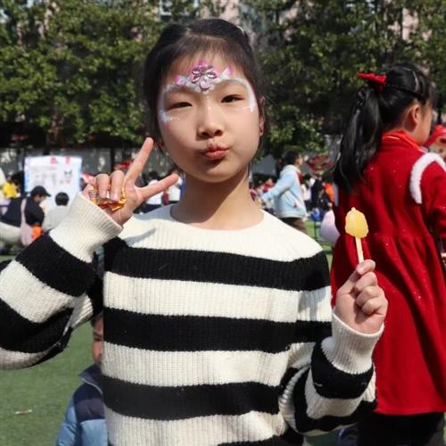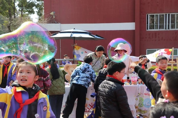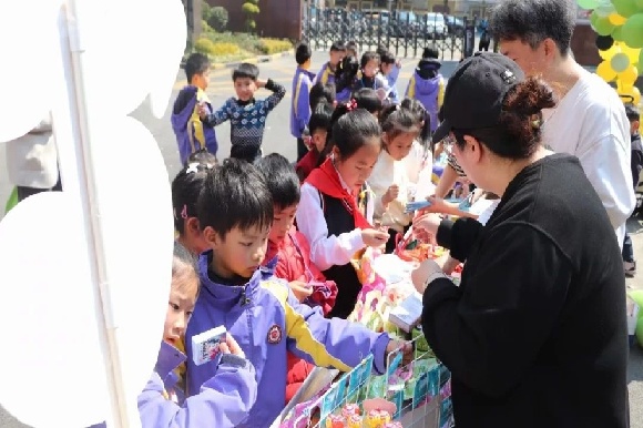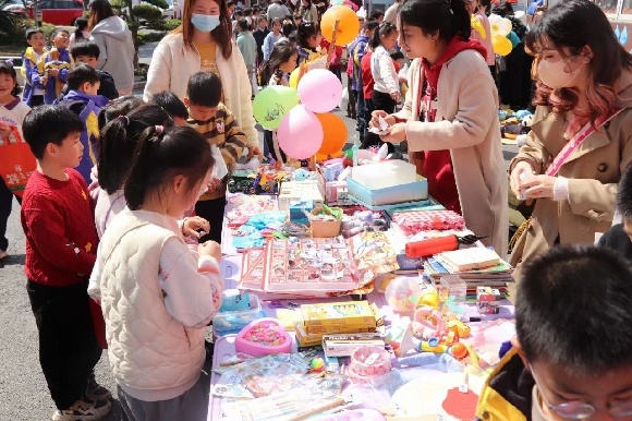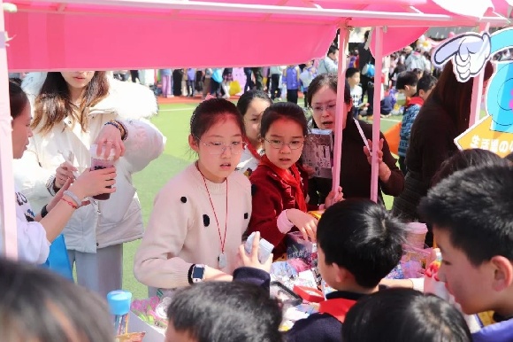 你听!“1元小文具!”“限量手链仅此一件!”“来一串棉花糖!只要5元!”……叫卖声、欢笑声络绎不绝,奏响春日最动听的交响曲。