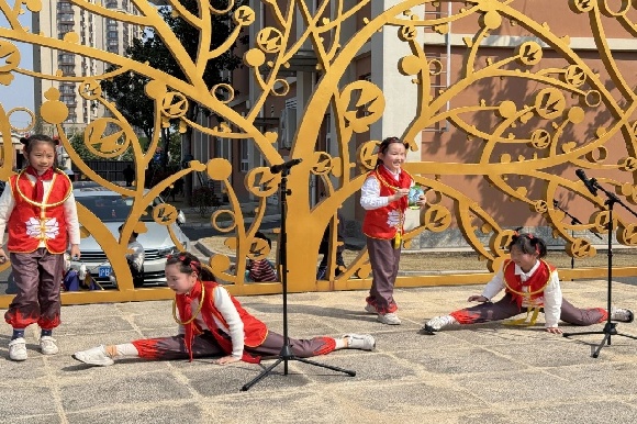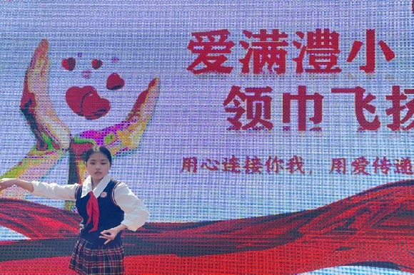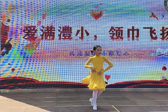 此时,司令台上,“红领巾”才艺秀惊艳全场——琴声如溪流潺潺,舞姿似蝴蝶翩跹,童声合诵《爱的诗篇》,气势如虹的澧小舞龙表演引得掌声雷动。每一份才华,都化作善款汇入“爱心基金”,为远方的伙伴送去希望的光。