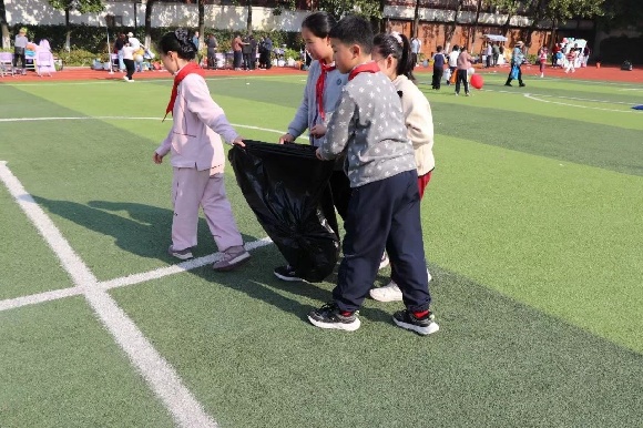 转眼间,活动已接近尾声,箱盒中堆满了硬币与纸币,宛如一座座“爱心小山”。各班同学细心清扫摊位,随手拾起散落的纸屑,小小善举在操场生根发芽。
