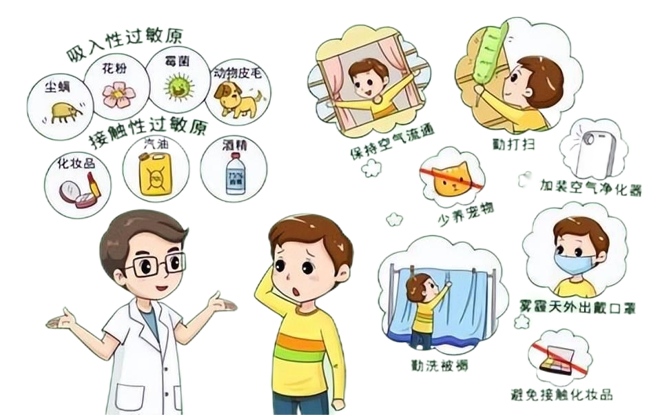 2.接受过敏原检查,结合患儿的临床表现,制定有针对性的个体化预防措施。花粉过敏者在致敏花粉播散季节,应减少外出或外出佩戴防护口罩、防护眼镜等。