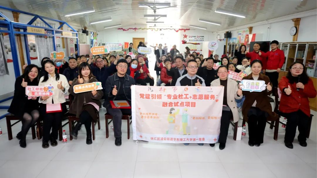 近日,徐汇区凌云街道在华东理工大学第一居民区举行党建引领“专业社工+志愿服务”融合试点项目启动仪式暨“党建引领聚合力共建共享促发展”党建联建签约行动。此次活动通过“专业社工+志愿服务”的深度融合,为社区居民提供精准化、高效化的志愿服务。