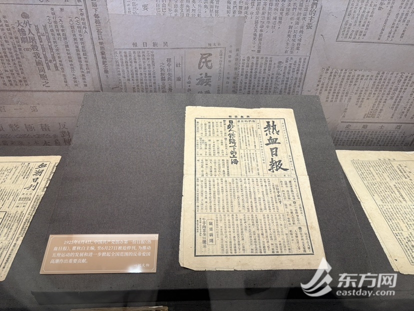 “热的血”一词,出自中国共产党创办的第一份日报——《热血日报》。中共一大纪念馆党委书记、馆长薛峰说,1925年6月4日中国共产党创办第一份日报《热血日报》,瞿秋白任主编,展览名称取自这份日报,也生动呈现当时革命的激情。这份日报也是一份珍贵的一级文物。“为了这次展览我们将一大馆藏的800多件相关文物细致筛选,最终展出实物127件,基本都是原件,可以说倾囊而出了,对于这间400平不到的展厅而言密度很高,其中11件国家一级文物,35件二级文物,44件三级文物。”