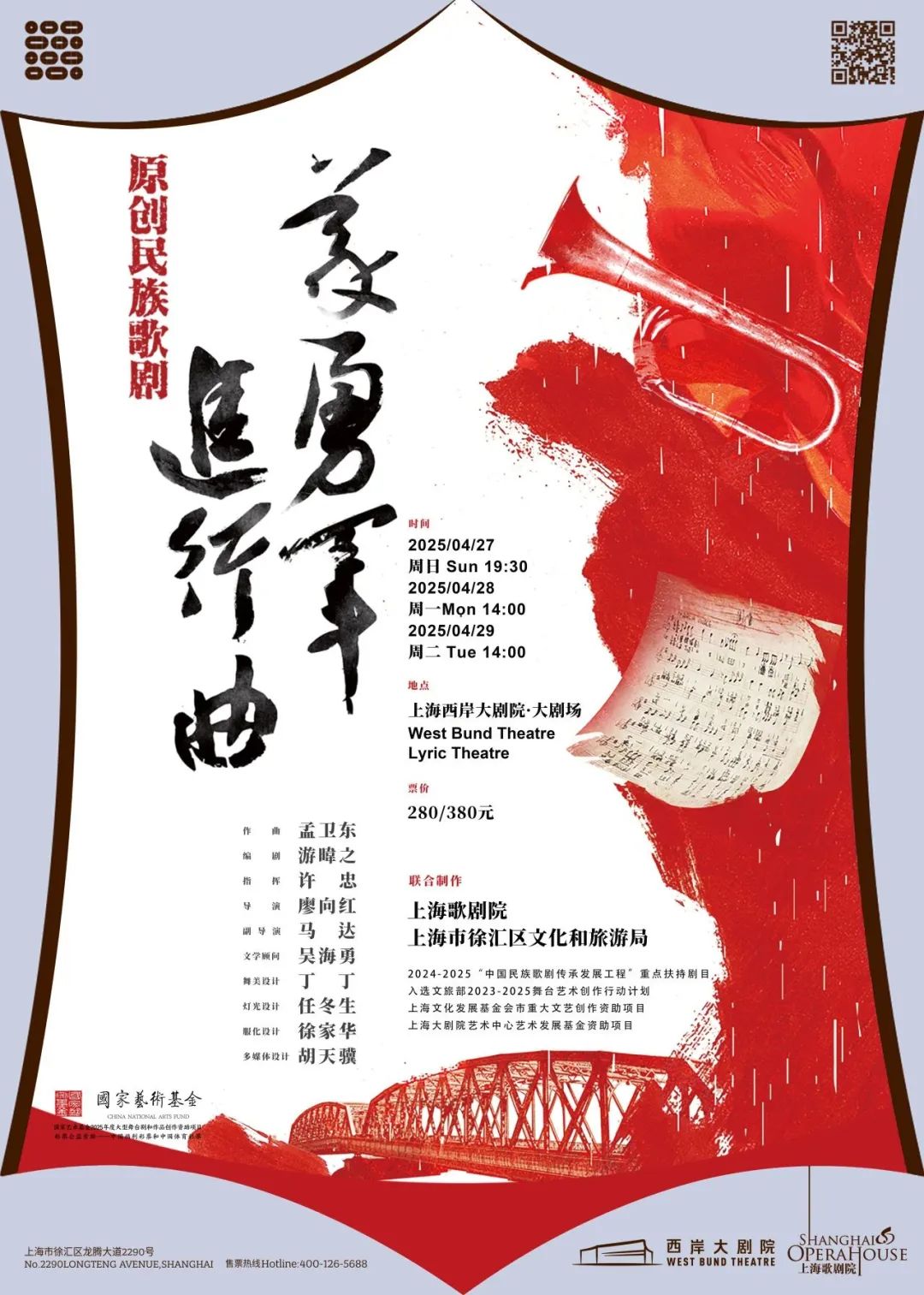 在纪念《义勇军进行曲》诞生90周年之际,原创民族歌剧《义勇军进行曲》将应邀作为上海西岸大剧院开幕大戏再度唱响,激发观众的爱国热情与民族自豪感,在新时代的伟大征程上,鼓舞中华儿女万众一心,前进,前进,前进进!