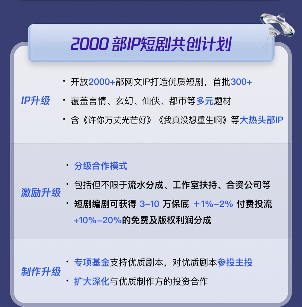 阅文加码短剧扶持力度:2000部IP全面开放 优质作品可获投流+分成