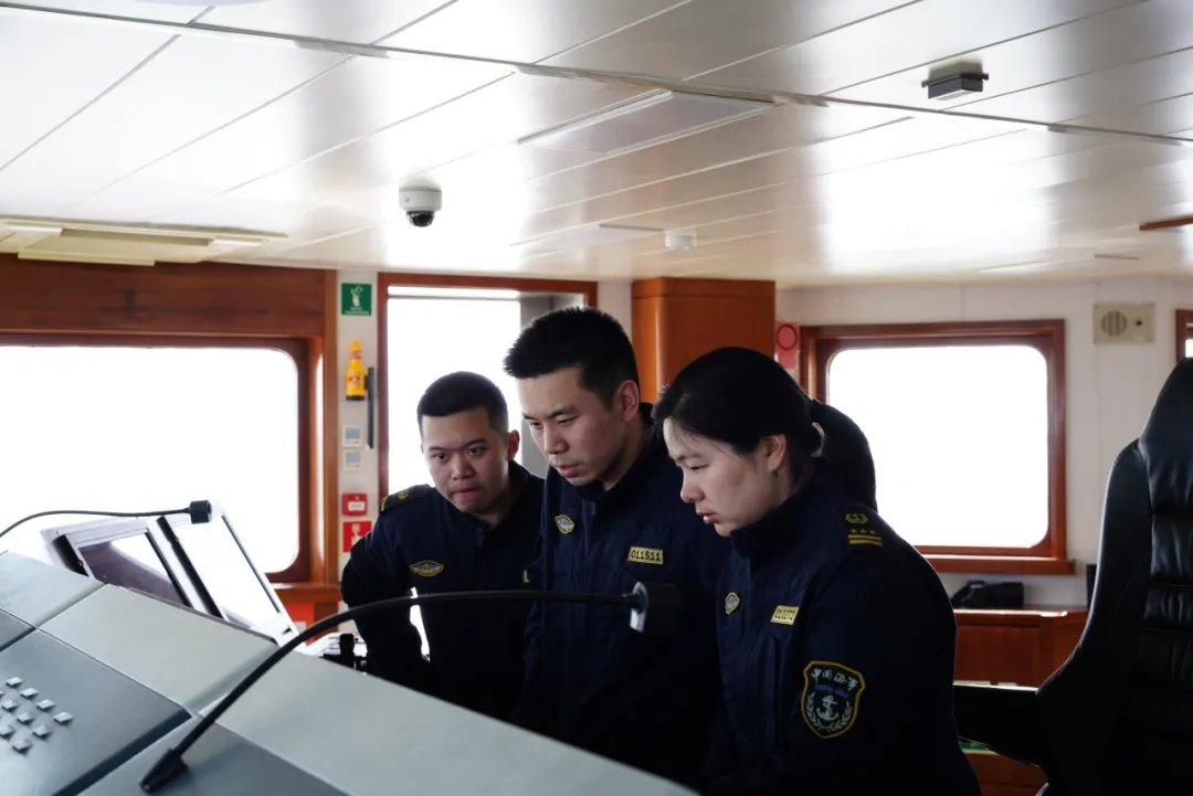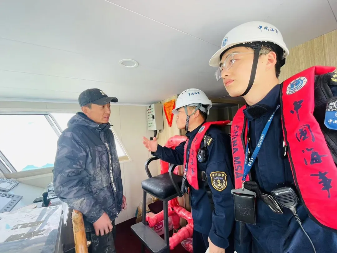“海巡01”轮在巡航期间,重点检查商船和渔船的值班值守情况,在甚高频电台公共频道CH16持续呼叫过往船舶,开展现场抽查点验,督促提醒加强值班,注意航行安全。