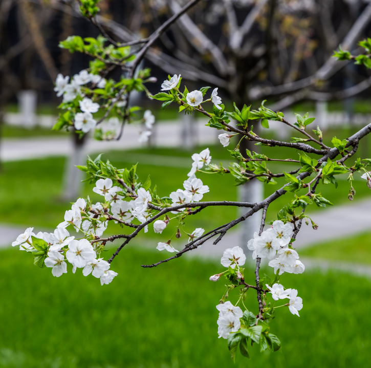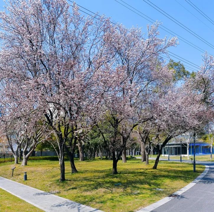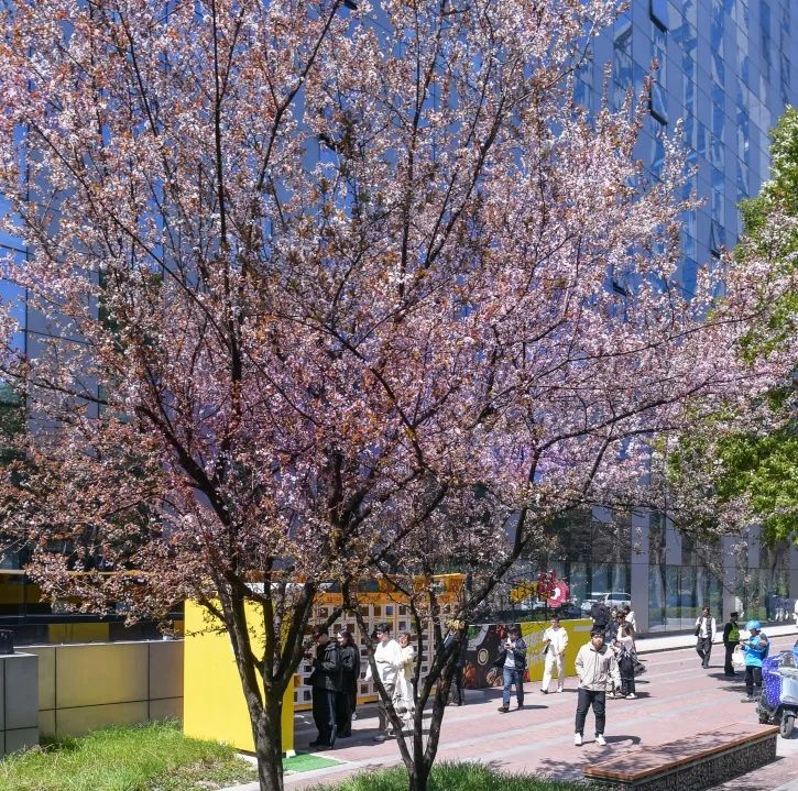 园区的早樱率先点亮春天,五片花瓣簇拥着鹅黄的花蕊,俏皮可爱。风起时,花瓣纷纷扬扬飘落,像是下了一场浪漫的花雨,让人忍不住驻足,沉浸在这如诗如画的氛围里。