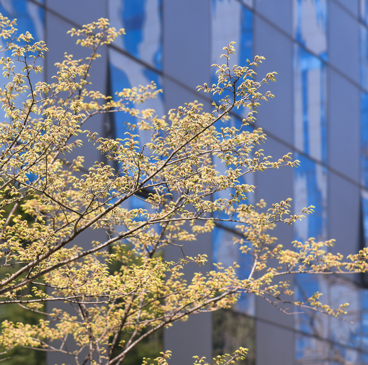 员工们在午休时漫步于花间小道,享受着春天的气息。一朵花、一片叶……总有一个成为你停下脚步的理由。