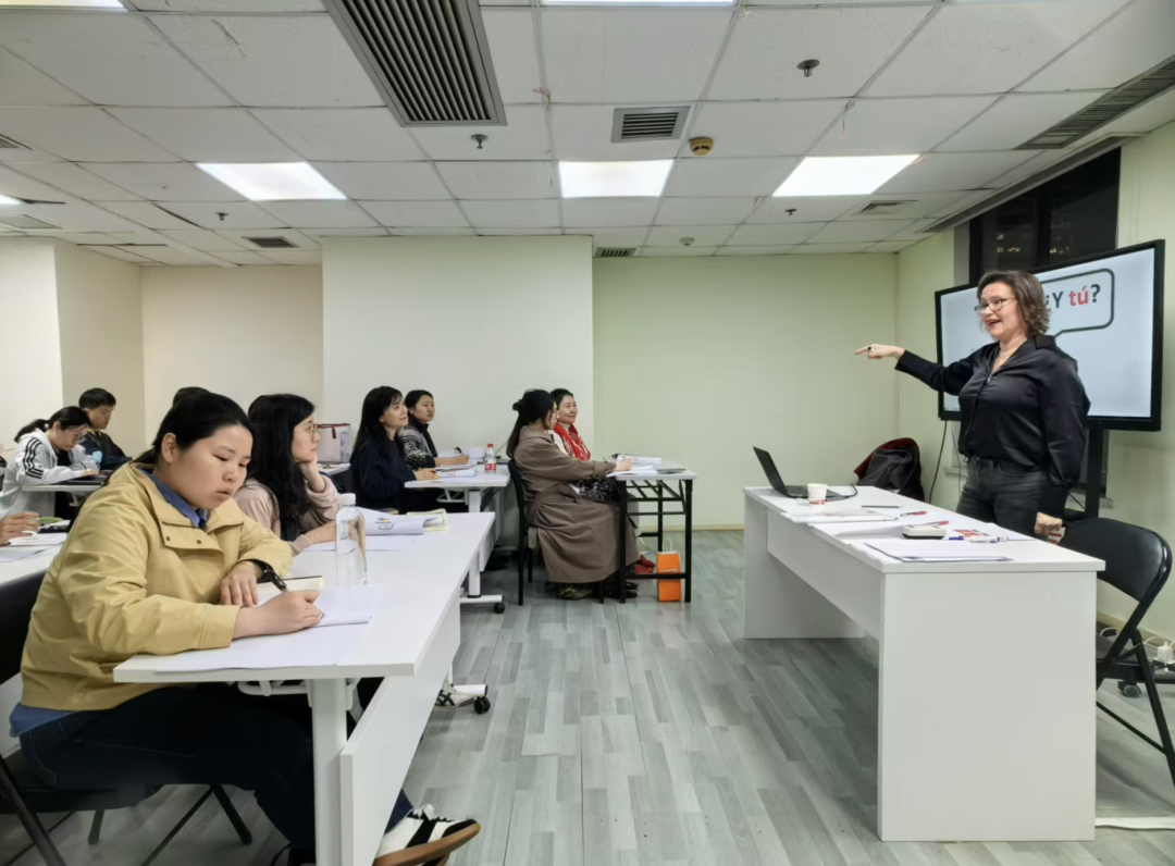 晚上六点三刻,在圣爱大厦的西班牙语教学点,虽然还未到上课时间,但已经有不少学员在结束了一天的工作后,早早来到教室里,为开学第一课做准备。据了解,圣爱中智小语种教学点是上海唯一的西班牙语社会考证点,授课教师为考官级,夜校的12次课可计入考证课程积分,学员后续如果想继续学习,还可以享受学费优惠。