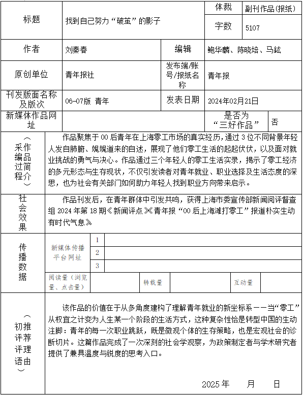 现在,我更加明白知识改变命运的重要性,坚定好好读书的决心。当下的我,正处在等待考研笔试成绩公布的焦虑阶段,也计划着回家乡农村亲身体验真正的农耕生活,为未来的生活积累宝贵的经验。这段在上海打零工的日子,无疑给我留下了深刻的印象,也促使我对未来有了更为全面和深入的思考。