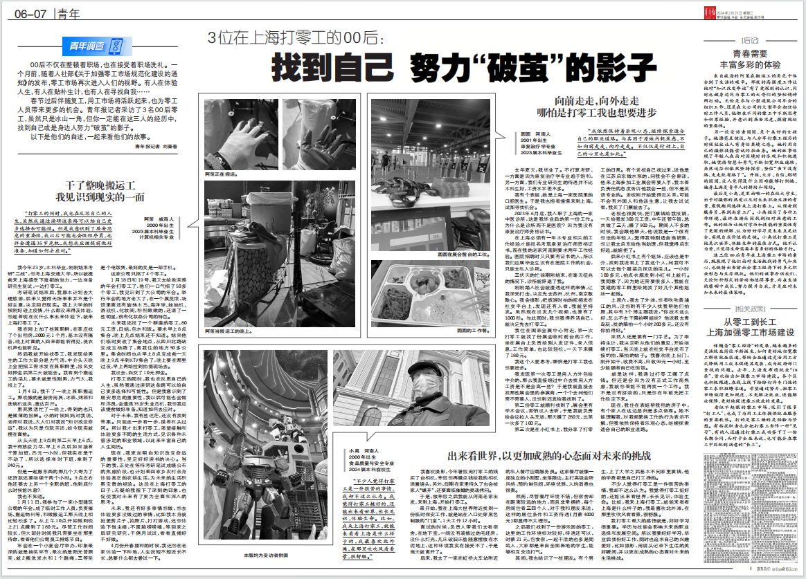 这三位00后青年在上海零工市场的亲历,既展现了他们面对生活挑战的勇气和决心,也映射出当前社会零工经济下的多元职业形态与生存现状。他们的故事告诉我们,无论何种形式的劳动都值得尊重,而在生活的磨砺中成长,努力提升自我,才是应对未知未来的最佳策略。