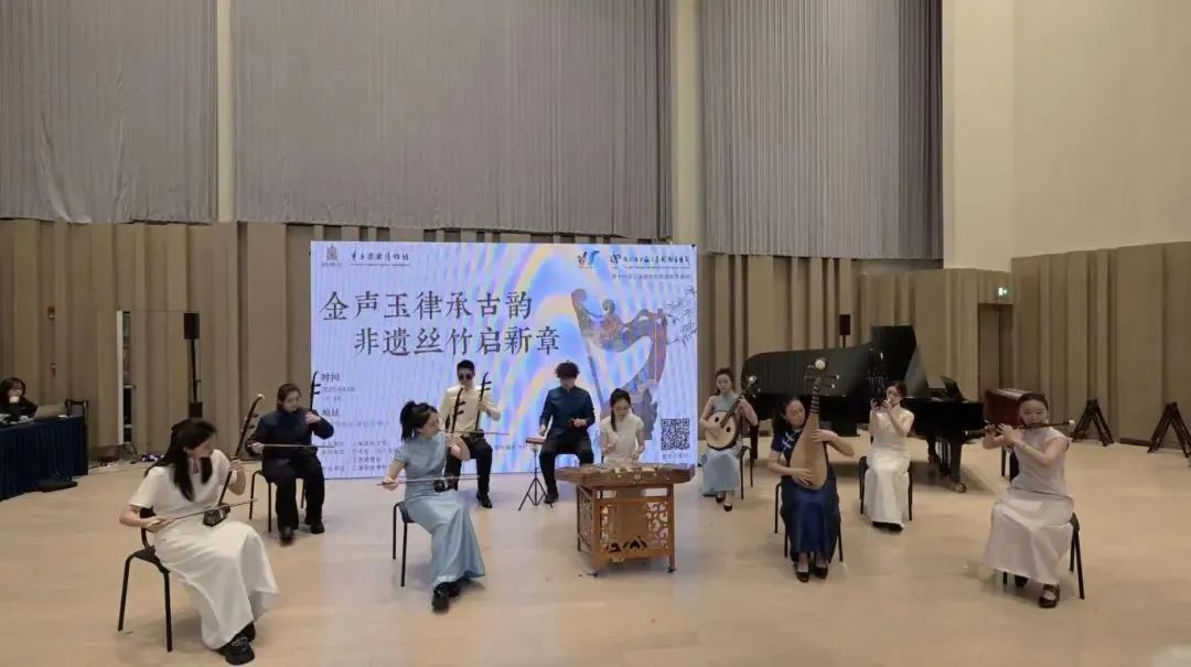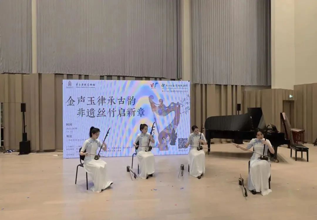 在上海音乐学院开放周之际,近日,徐汇区湖南街道的中小学生走进上音歌剧院,参加了上海音乐学院东方乐器博物馆举办的主题讲座《博物馆之“变”——探秘博物馆的那些事儿》和“金声玉律承古韵非遗丝竹启新章”音乐会,在“没有围墙的社会大美育音乐课堂”中沉浸式感受非遗古乐的独特魅力。