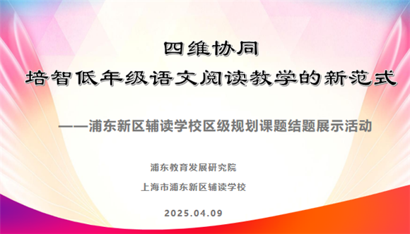 2025年4月9日上午,一场以“学科素养视域下培智学校低年级生活语文阅读教学”为主题的区级规划课题结题展示活动在浦东新区辅读学校成功召开。本次活动中,课题组以“四维协同”教学策略为核心,通过课堂实践、研究汇报与案例分享,展现了特殊教育领域阅读教学的创新成果与深刻思考。
