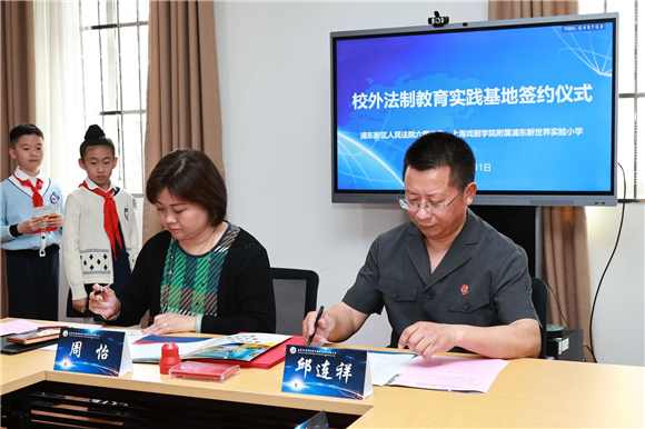 [浦东]上戏附属浦东新世界实验小学:校院携手启新程 观案学法零距离——校外法治教育实践基地签约仪式