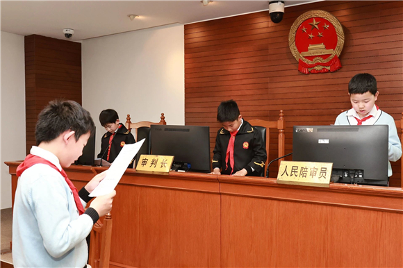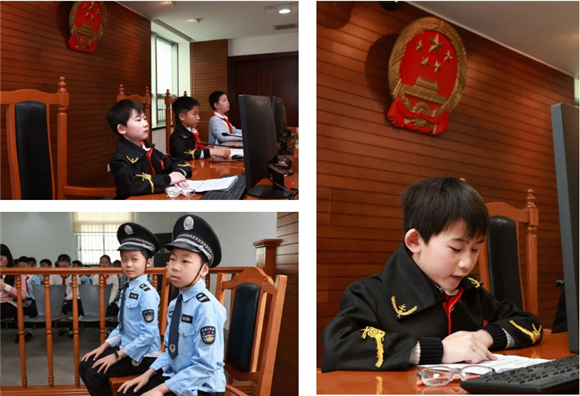 “现在开庭!”随着庄严的法槌落下,由同学们饰演的“小审判长”“小书记员”“小公诉人”“小法警”等角色正式融入到庭审之中。