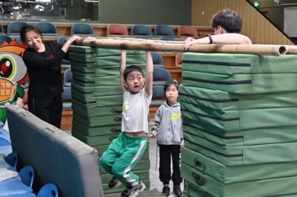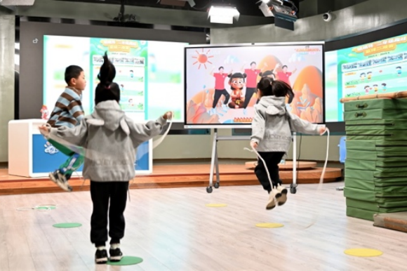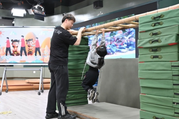 演播室里,体育老师活力满满地带领孩子们开展一系列的趣味运动游戏。孩子们奔跑着、欢笑着,在运动中尽情享受释放天性的快乐,每一个跃动的身影都闪耀着蓬勃的朝气。