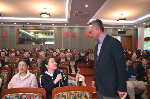 与此同时,家长们汇聚建德堂,观看了上海教育电视台录制的特级校长、正高级教师魏澜校长协同历史、地理、音乐、道法等不同学科的教师带领初中学子前往壶口瀑布、一起学习《黄河颂》的电视专题片,并聆听了魏澜校长的讲座《智变时代心守本源——教育的突围与回归》,真实触摸到上海市建平实验中学这所优质学校的育人情怀与办学温度。