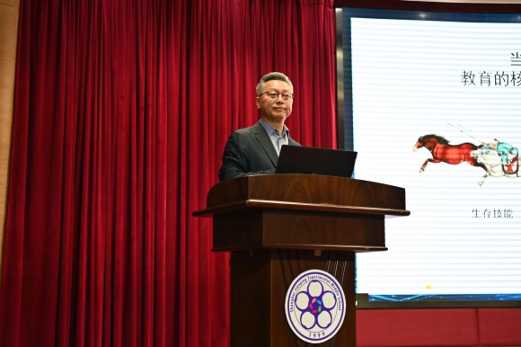 魏校长从技术发展与教育演进两者的关联谈起,从农业时代孔子周游列国开始教育的“火种传递”到工业时代教育的“技术革命”再到智能时代教育的“个性觉醒”,魏校长指出教育的核心是“人与人的精神联结”,在这“变”与“不变”中教师应坚守教育的本源。