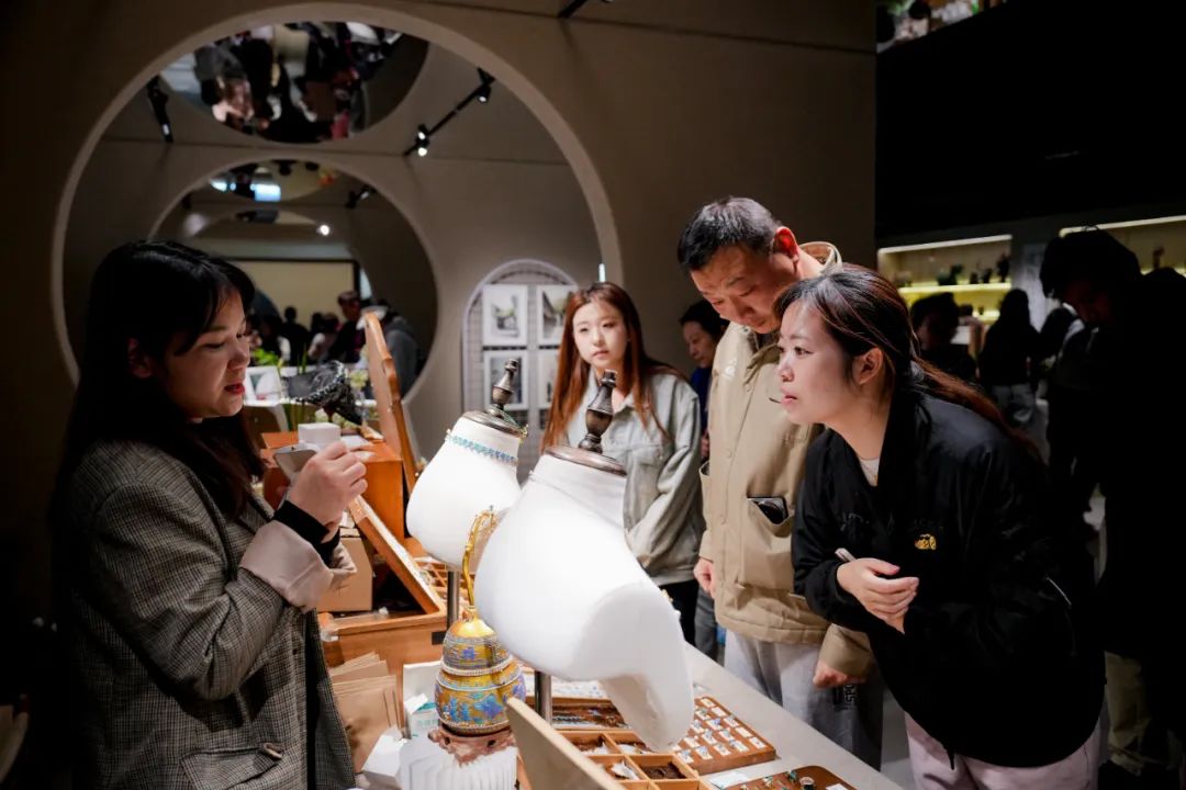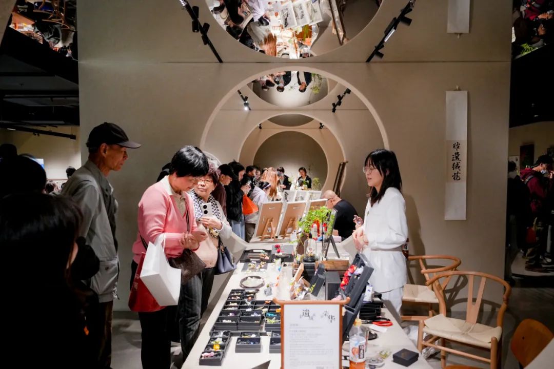 在“塔影空间”里,《共君聚砂》非遗紫砂壶展引人流连;《非遗小课堂》场场爆满,游客们满心欢喜地拿着亲手制作的各种国风小物,爱不释手;《共生共创》则召集了多个领域的新生代艺术家,把传统美学用时代潮流的手法重新定义和创新。