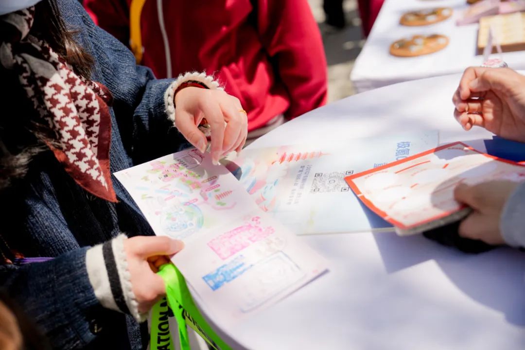 庙会邮局里,人们精心挑选着个性明信片,盖上庙会纪念章,把满满的祝福寄给远方的亲朋好友。“灵动生活街区”的打卡活动也人气爆棚,完成任务还能兑换好礼,大家玩得不亦乐乎。