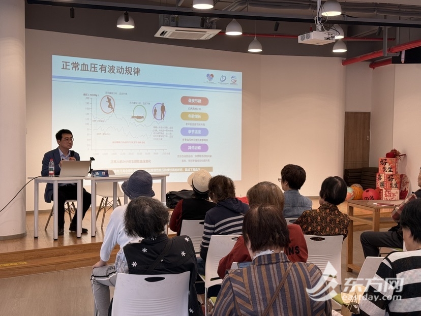 为了推广泛血管健康理念以及科普高血压管理知识,上海市徐汇区凌云街道拾艺汇日前举办了主题为 “健康血管,幸福人生”的科普主题活动。活动特邀复旦大学附属中山医院徐汇医院心血管内科杨靖教授担任主讲,通过线下讲座与线上直播结合的形式科普高血压的测量和治疗相关知识。本次活动由上海市医学会、苏州工业园区东方华夏心血管健康研究院泛血管疾病管理中心、徐汇区科委科普项目(xhkp-HM-2024011)联合支持,吸引了近50名居民参与。