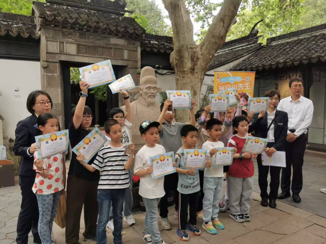 完成展厅任务后,孩子们在光启公园内寻找徐光启相关雕像,并通过贴纸游戏巩固四大著作知识。最终,每位参与者获颁“海派文化小小守护者”证书,激励其成为传统文化的传承者。