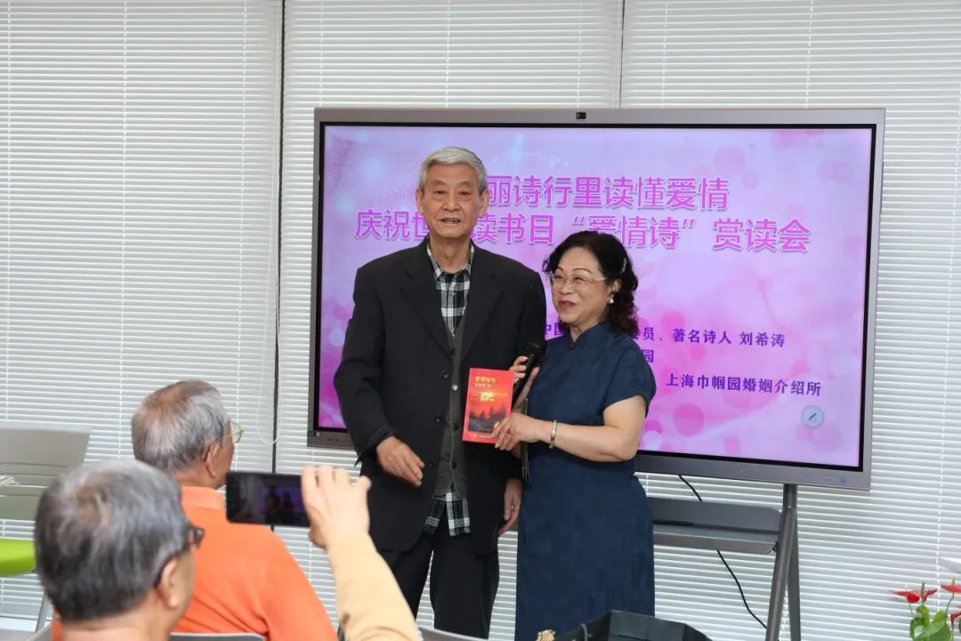 近日,在徐汇区天平街道党群服务中心,82岁的“诗翁”刘希涛在上海市妇联巾帼园举办的“爱情诗”赏读会上,作了近两个小时的演讲,受到了听众的热烈欢迎。