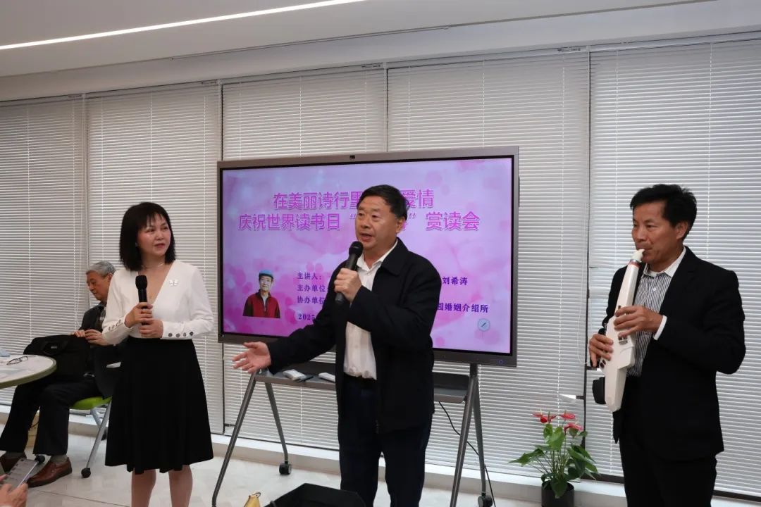 上海出海口文学社副社长陈莉主持演讲会。女高音歌唱家潘幽燕教授、“百灵鸟”陈莉、尺八吹奏者卞贤俊以及“十四行诗人”杨华、胡冬菊、顾之敏、竺敏等人穿插朗诵、演唱了刘希涛多首经典的爱情诗和歌曲,让听众享受了一场情真意切、声情并茂的读书视听盛宴。