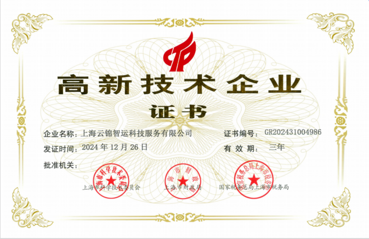 以科技创新驱动智慧运营高质量发展 云锦智运荣获“高新技术企业”“上海市专精特新企业”双认定
