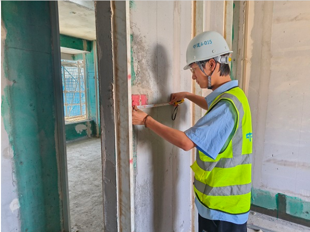 项目部通过划分施工责任区,实现责任到人、管理全覆盖。各专业施工班组正有序开展砌体工程、管线预埋等作业,构造柱钢筋绑扎班组严格实施毫米级防渗漏施工工艺,BIM技术团队通过三维模型为工人提供精准定位指导,质量员手持检测仪器逐层核验墙体垂直度。项目负责人介绍,当前8栋主楼同步推进二次结构施工,ALC轻质隔墙板安装、水电管线预埋等工序实行24小时轮班作业,确保节点目标如期达成。