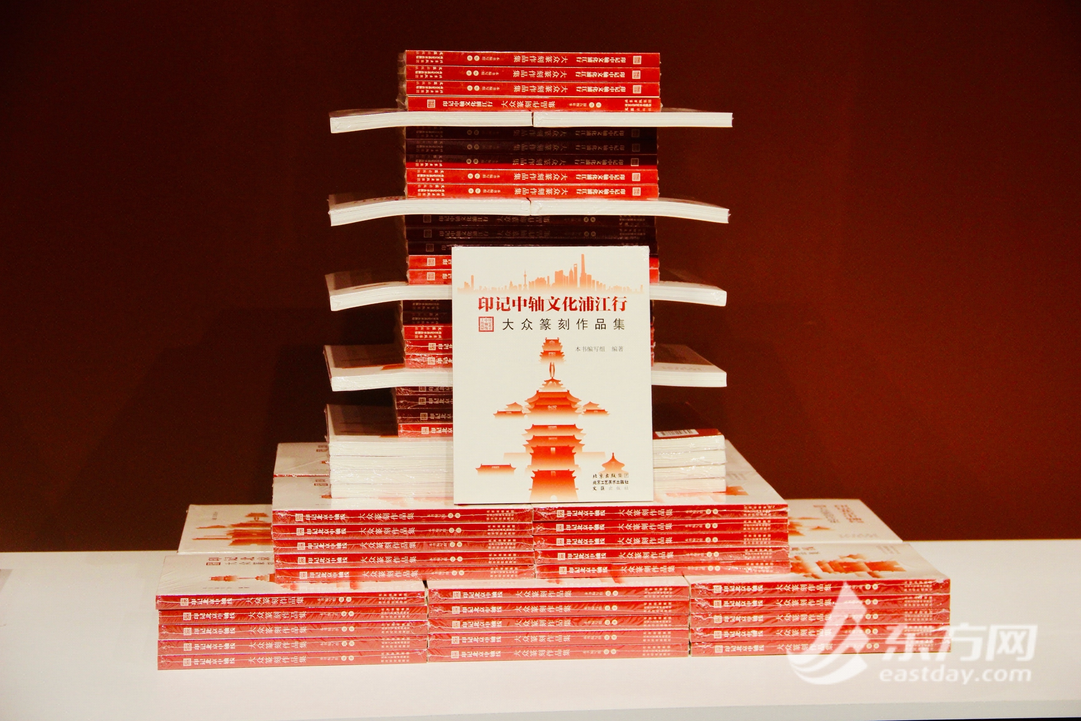 本次展览组委会还精心编辑出版了《印记中轴文化浦江行——大众篆刻作品集》。开幕仪式上,来自京沪两地的主办方和嘉宾们为向中小学、文博单位、企业等代表赠送大众篆刻系列书籍,并在卷轴上共同钤印盖章。