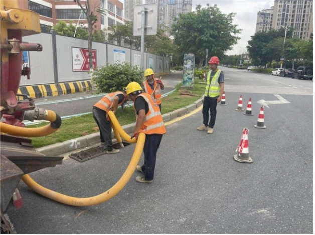 此次清淤行动聚焦项目周边重点区域,如美溪道路口、滨兴路路口等管道交汇处。工作人员对市政排水管道进行全面排查,精准定位淤积堵塞严重路段。针对不同管道的具体情况,项目团队灵活运用高压水枪冲洗、机械清淤车吸污、人工下井清掏等多种方式,对管道内沉积的淤泥、垃圾、杂物进行彻底清理。过程中,项目团队充分发挥专业优势,科学制定清淤方案,合理调配设备与人力,确保清淤工作高效有序推进。