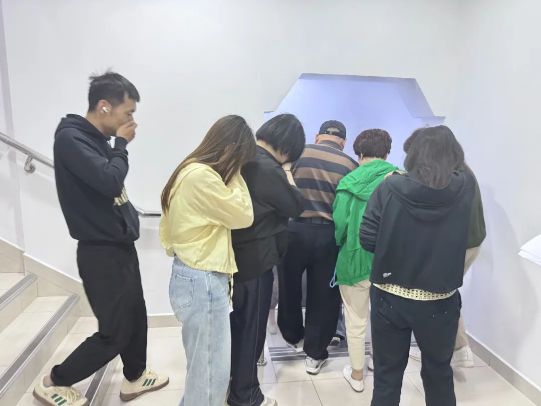 随着消防逃生演练正式开始,现场模拟电气线路故障引发火情,浓烟迅速弥漫。斜土街道社区党群服务中心消防监控室值班人员发现异常后,立即触发紧急报警,通过广播通知全体人员进行疏散。随后,由参训人员组成的各小组迅速响应,协同合作。灭火行动组携带器材赶赴现场,尝试扑灭初期火源;指挥组宣布启动疏散请求支援;疏散引导组成员各司其职,引导受困人员沿着安全通道有序撤离;秩序组在各通道维护秩序;断后组逐个检查卫生间、休息室等场所,确保无人遗漏。最终,所有人员成功疏散至广场集合点,整个演练过程紧张有序,展示了党群服务中心工作人员良好的应急处突能力和团队协作精神。