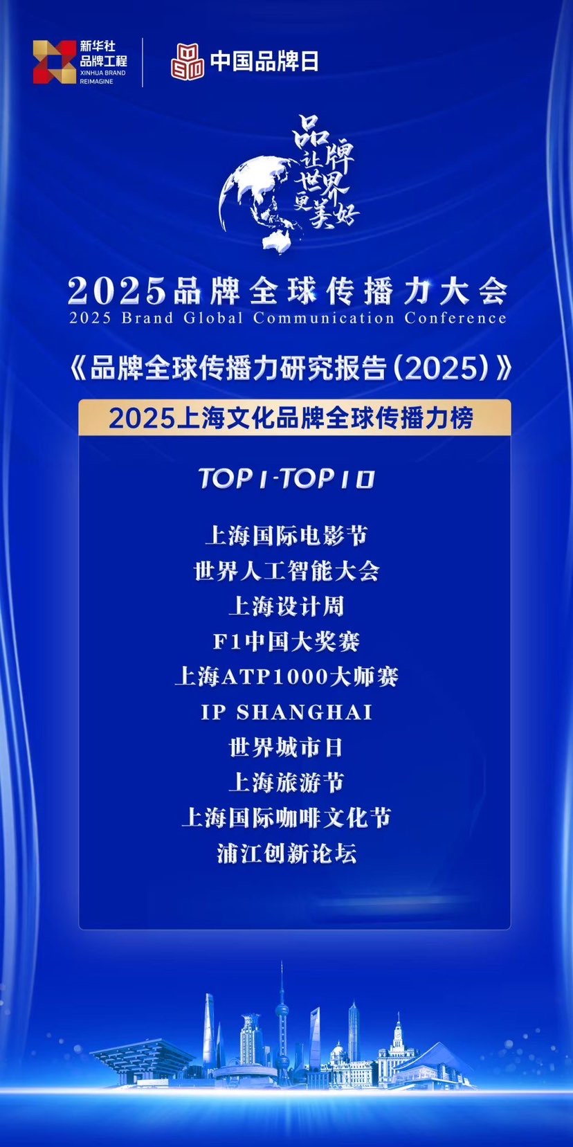 在全球城市竞争格局重塑的背景下,文化品牌正成为衡量城市传播力与国际影响力的重要指标。上海凭借其国际化优势和持续的创新实践,打造了一批具有世界影响力的文化品牌,形成了“上海经验”。报告推出的上海文化品牌全球传播力榜,集中展现了上海文化品牌在全球的传播表现,如上海国际电影节、世界人工智能大会等,均取得了显著的成绩。