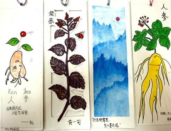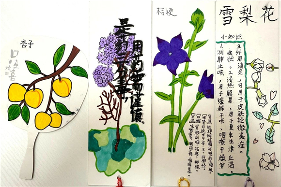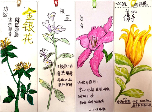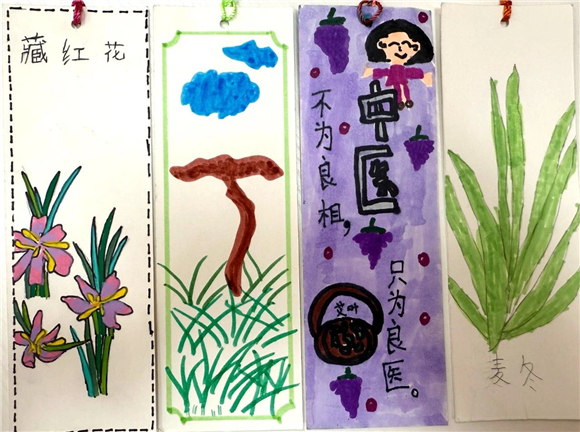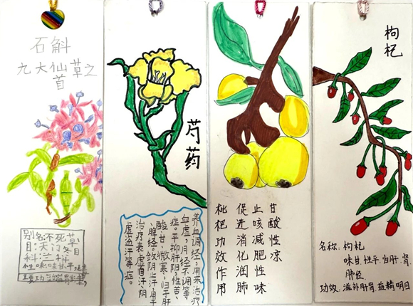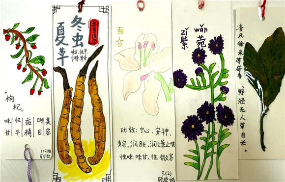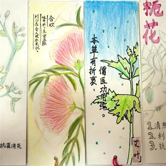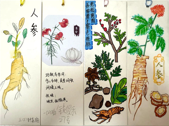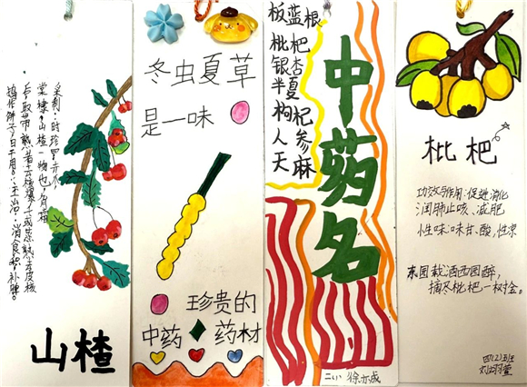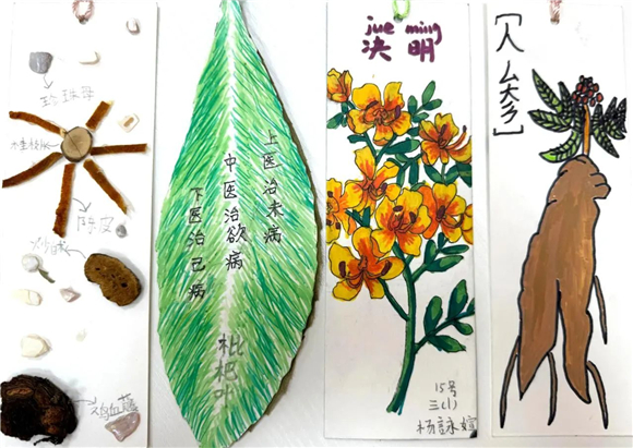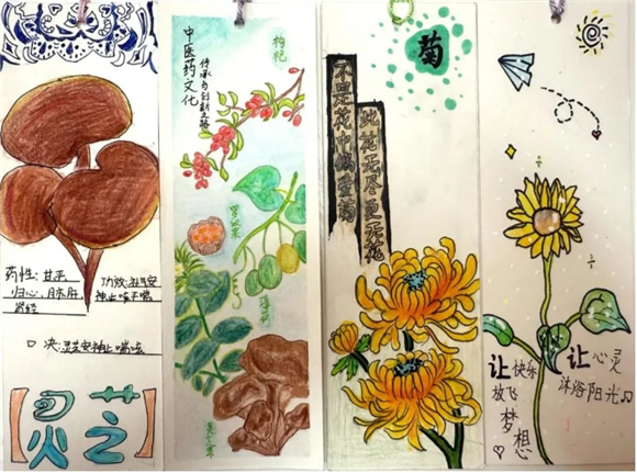 在读书节期间,"中医药书签制作大赛"成为了学生们展示创意与才华的舞台。学生们充分发挥自己的想象力,将中医药元素与语文知识巧妙融合,创作出了一件件独具匠心的书签作品。有的书签上绘有栩栩如生的草药图案,仿佛让人闻到了阵阵药香;有的书签上镌刻着中医名言,传递着古老的智慧;还有的书签结合了诗词、成语等元素,展现出深厚的文化底蕴。