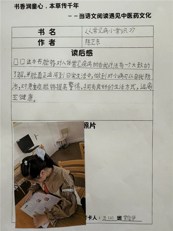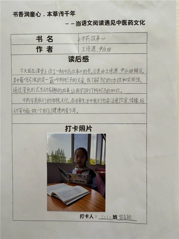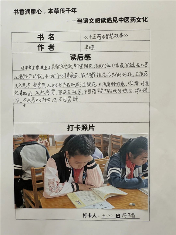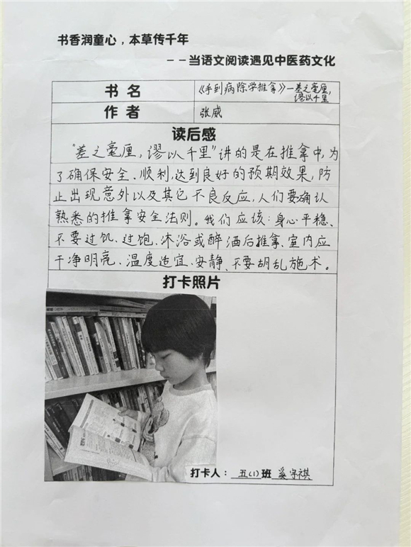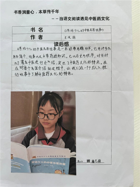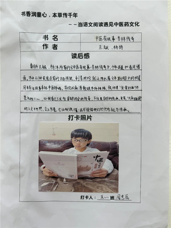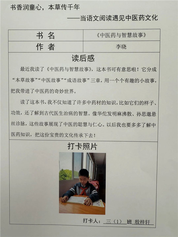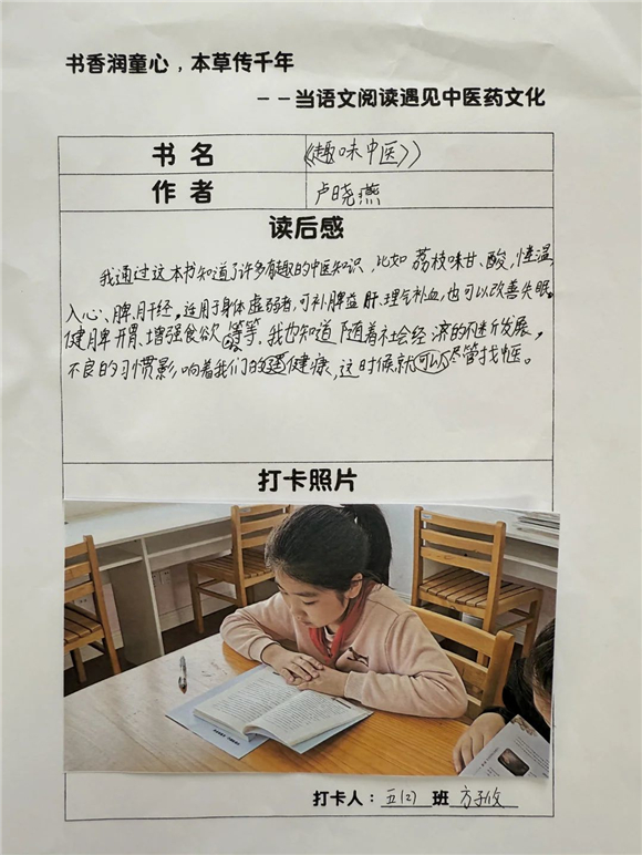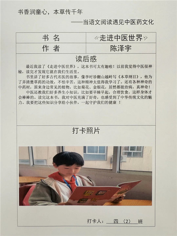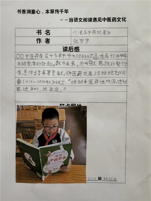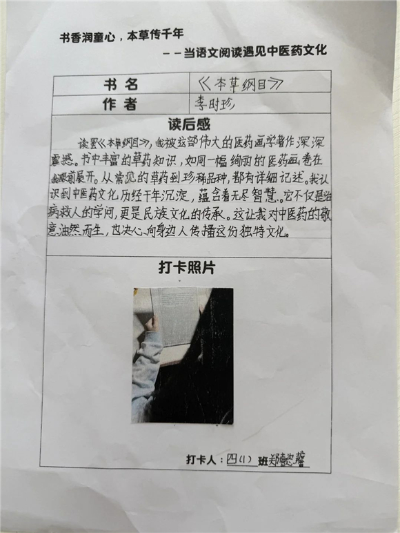 高年级(三至五年级)的学生则在充分阅读的基础上撰写读后感,将中医药文化与个人感悟紧密结合,字里行间流露出对传统文化的热爱。