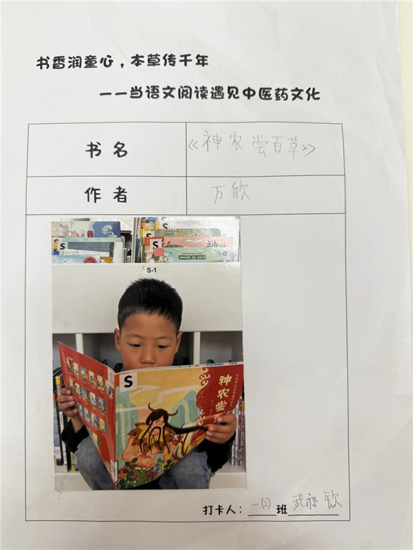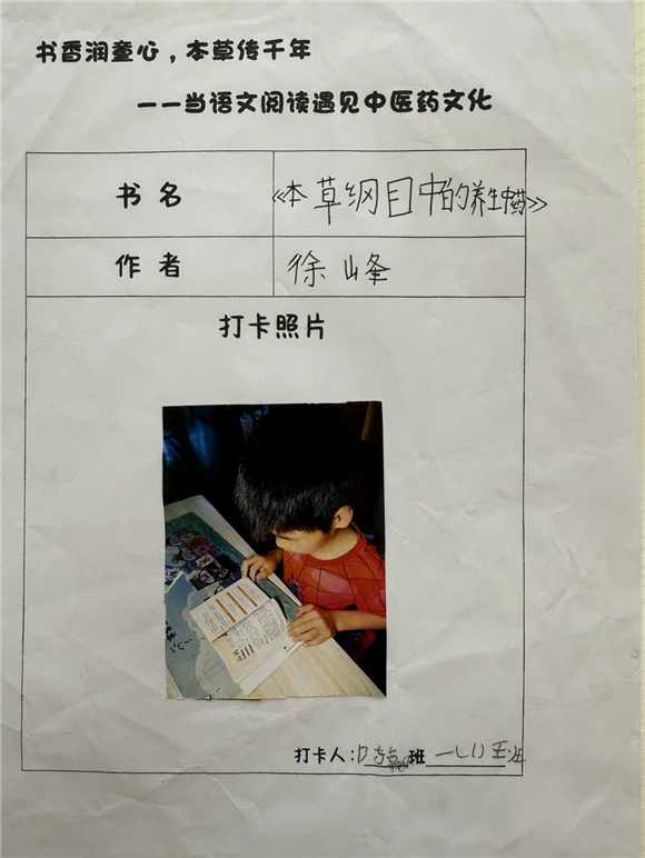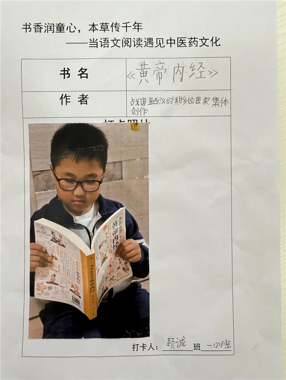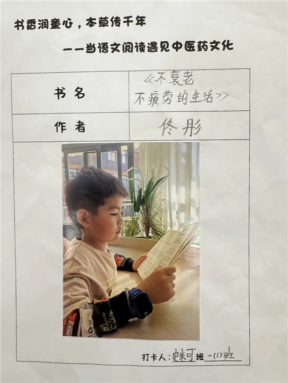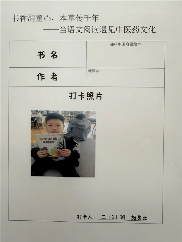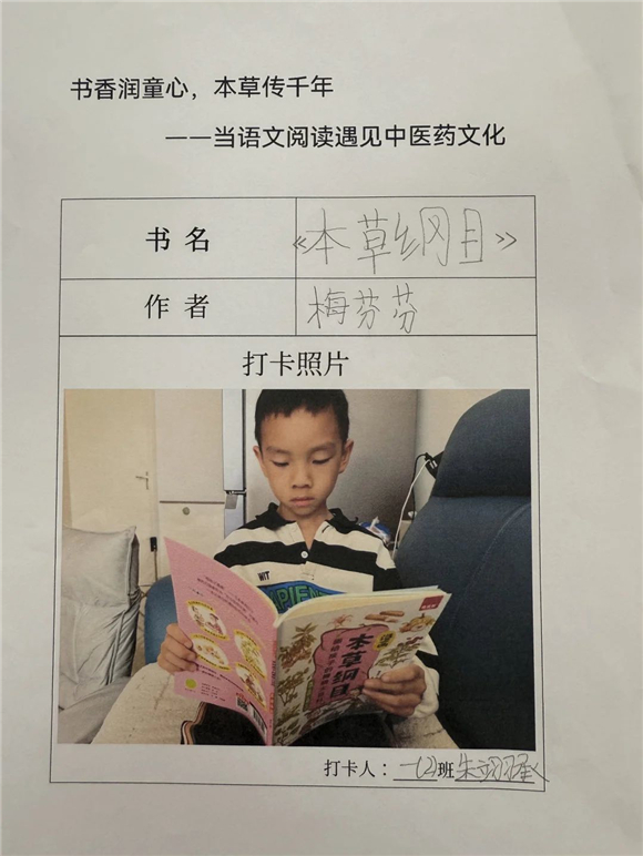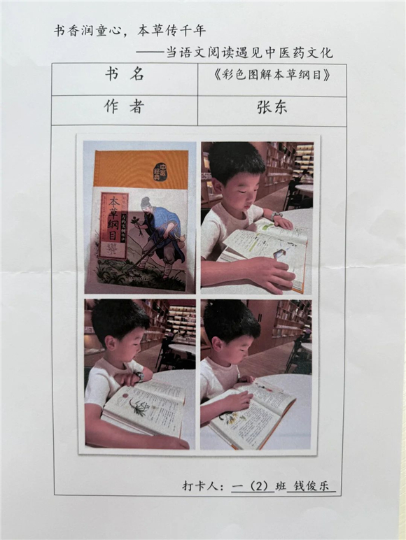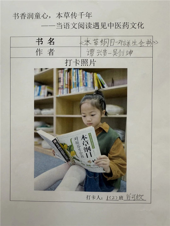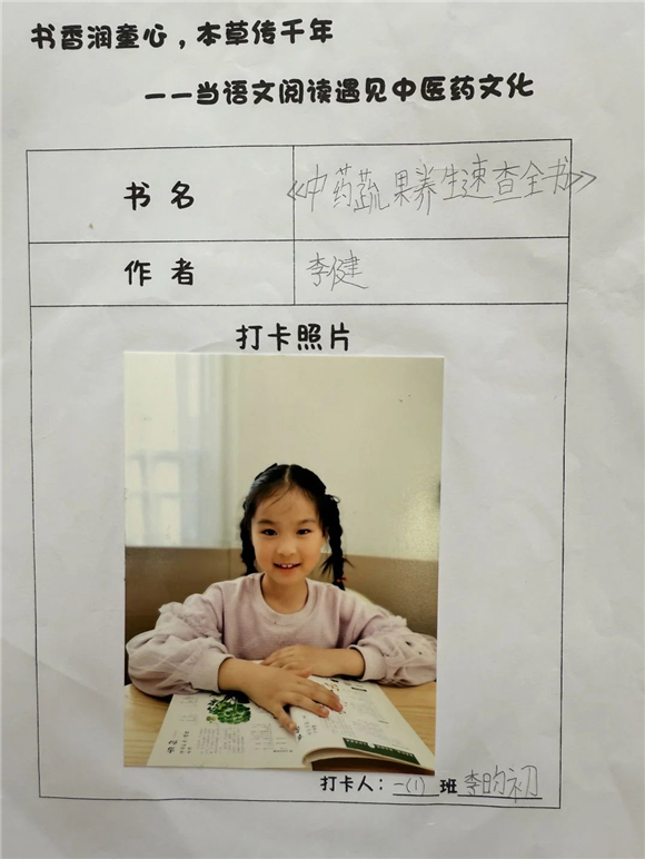 活动伊始,"中医药图书打卡行动"便吸引了全体学生的热情参与。在劳动节长假期间,家长们纷纷化身孩子的阅读引路人,带领孩子走进家附近的图书馆,开启了一场寻找中医药宝藏图书的奇妙之旅。孩子们在书架间穿梭,目光急切地搜寻着《本草纲目》(少儿版)、《中医故事绘本》等经典中医药书籍。找到心仪的图书后,他们兴奋地拍照记录,仿佛找到了开启中医药文化宝库的钥匙。