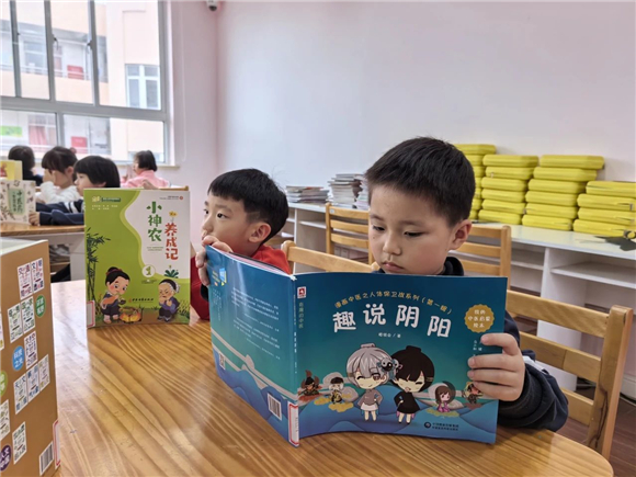 为了让中医药文化阅读融入学生的日常学习生活,学校积极推进"中医药图书角建设"。学校在校图书馆,精心增设了中医药图书专区,一本本散发着墨香的中医药书籍整齐排列,仿佛在向同学们诉说着古老的智慧。