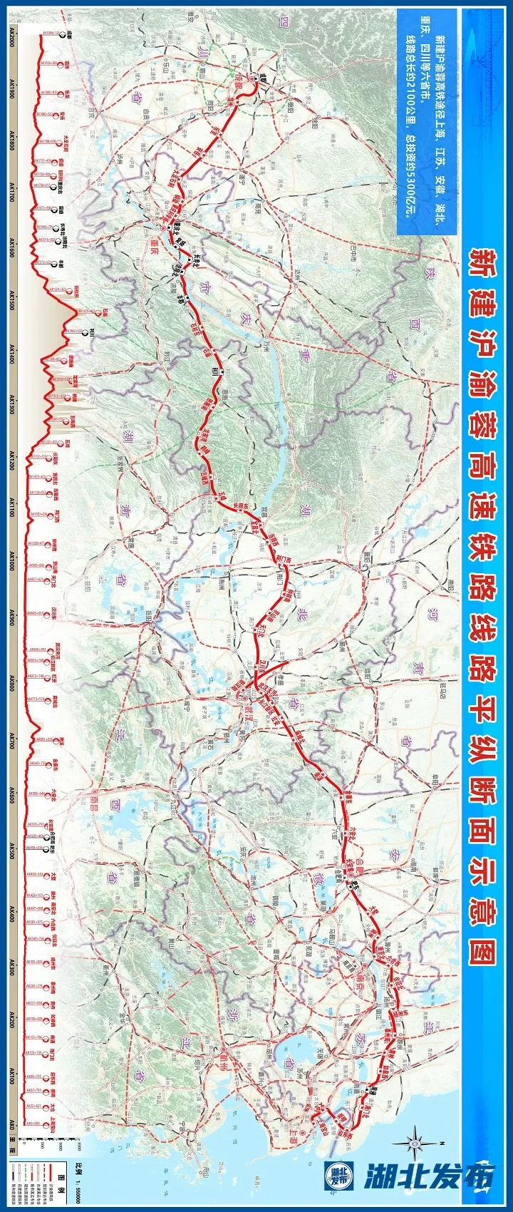 沪渝蓉高铁起自上海,途经江苏、安徽、湖北、重庆,止于四川成都站,贯穿4省2市,线路总长约2100公里,预计2030年前全面建成。建成后的沪渝蓉高铁将取代原有沪汉蓉快速客运通道,作为我国贯穿东西的沿江大通道,串联起长江经济带上、中、下游的11个省(市),成为长江流域综合立体交通体系主骨干、全国“八纵八横”高铁网主动脉之一。
