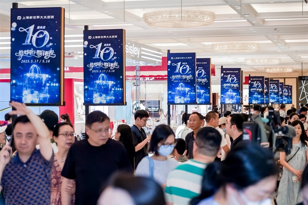 东方网记者程琦5月17日报道:作为上海商业的“金字招牌”,南京路步行街始终占据申城消费“顶流”地位。5月17日至18日,南京路步行街东段的新世界大丸百货迎来十周年店庆,以“全年最大力度”促销活动和科技感十足的消费体验,为上海“五五购物节”再添一把火。