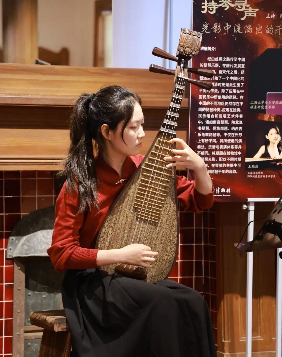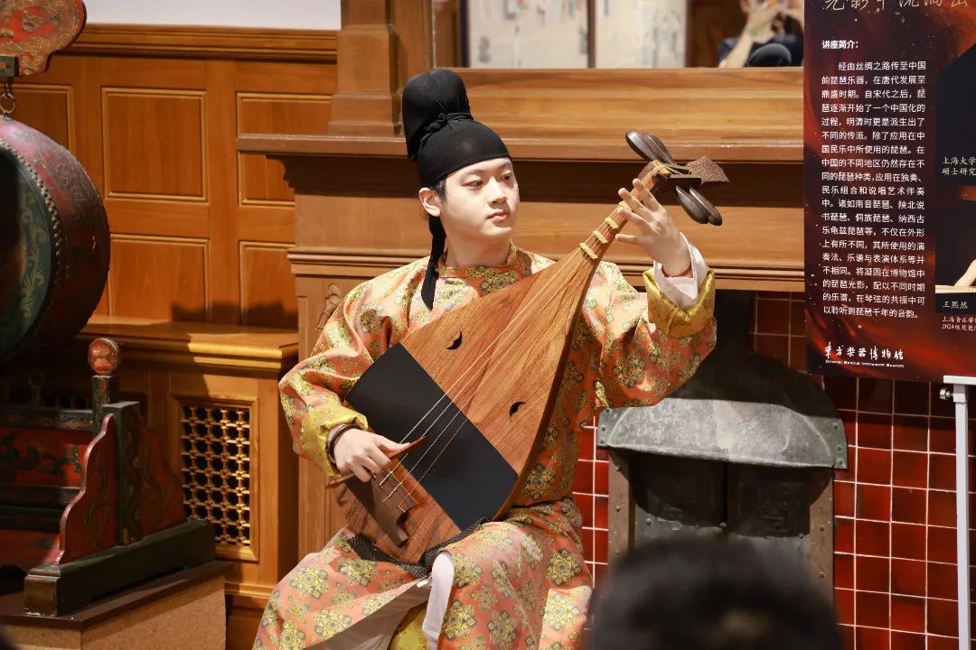 上海音乐学院党委宣传部副部长、东方乐器博物馆馆长肖阳研究员告诉记者,王熙然在本次讲座文武曲演奏中使用的琵琶大有来头。这把琵琶是上海音乐学院早期培养的国乐人才之一、琵琶演奏家程午嘉的六相十八品琵琶的仿制品,由东方乐器博物馆特聘研究员沈正国提供,为讲座更添一分上海音乐学院源远流长的历史深度与艺术氛围。
