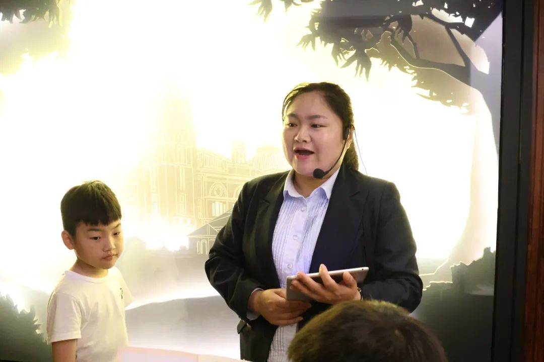 参与活动的亲子家庭首先在讲解员的带领下参观了邹容纪念馆。在活动开始前,每个孩子都领到了一本小册子——《寻找红色故事里的他·红色故事大闯关》,小册子上是有关革命烈士邹容的历史知识问答:“谁剪了清末官员辫子?”“他为何坐牢?”“谁冒生命危险将邹容埋葬?”而这些问题将在接下来的参观活动中一一揭晓。馆内展示的一幅幅历史图片,仿佛是时光的使者,将大家带回到那个风起云涌的革命年代。讲解员聚焦“家国情怀”,为大家深情讲述邹容的革命事迹。孩子们一边认真聆听讲解,一边用笔在小册子上的问题后勾选答案,这种边参观、边学习,还要“做题目”的方式,让孩子们能够更真切地感受革命先辈为了国家独立、民族解放,不惜抛头颅、洒热血的崇高精神,让爱国的种子在心中生根发芽。