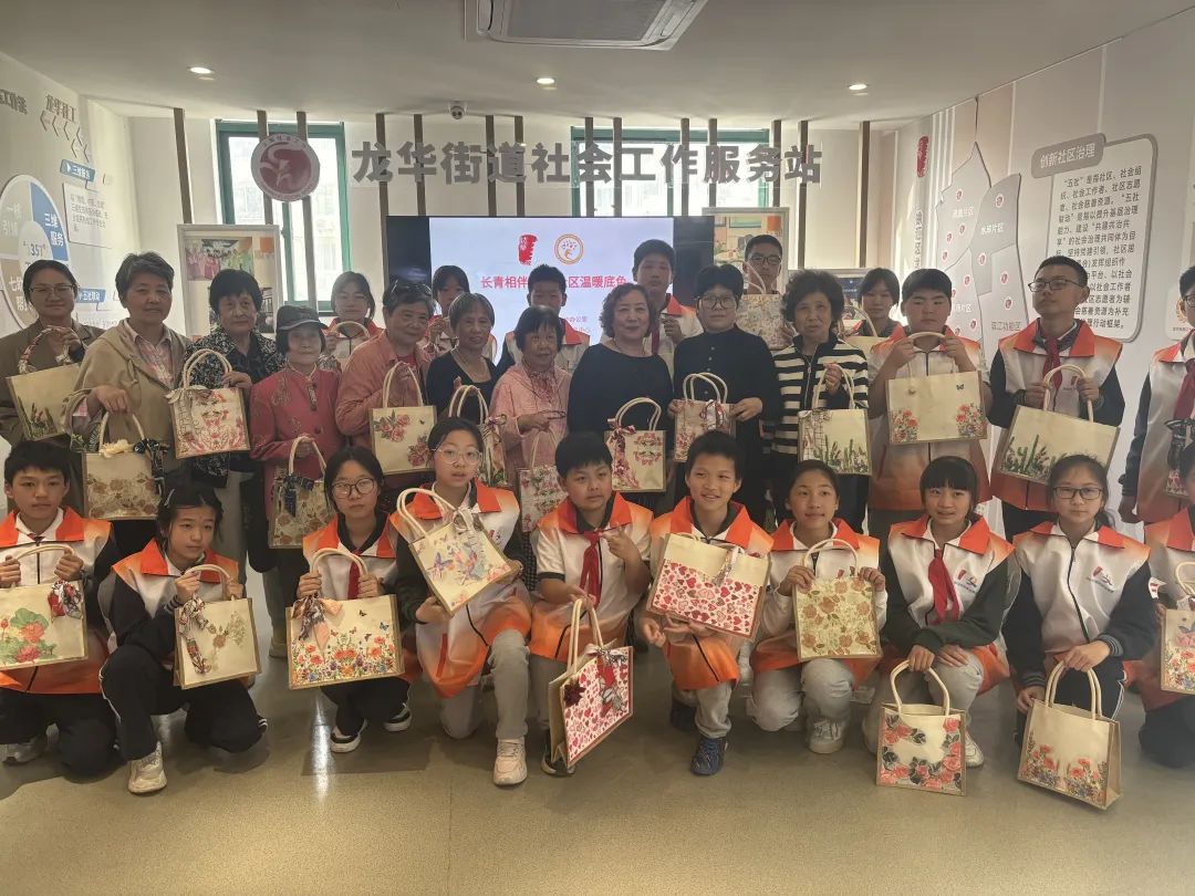 “通过‘陪伴式志愿服务’,此次活动既让长者感受到社会的关爱与温暖,也为青少年提供了生动的德育实践平台。”龙华街道相关负责人表示。经过一个多小时的精心制作,原本素色的帆布包焕然一新,跃动着缤纷的创意。活动尾声,长者和学生们手持作品合影留念,并交流制作过程中的感悟与趣事。
