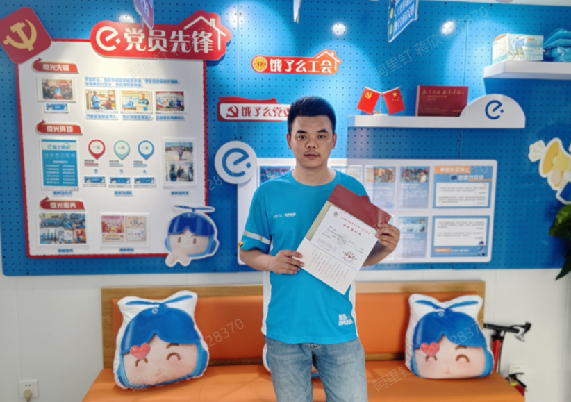 饿了么上海蓝骑士程永亮收到大学的录取通知书。