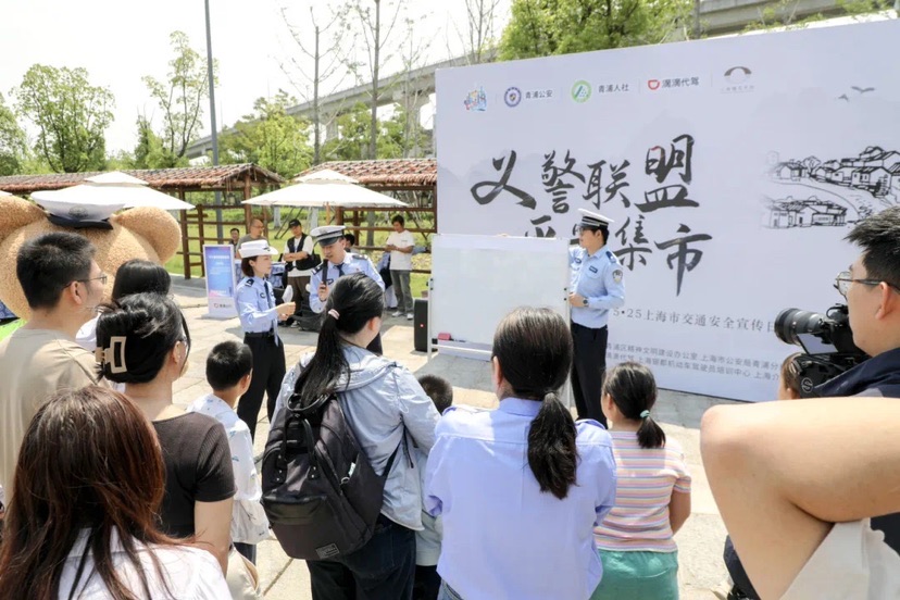 东方网记者王泳婷、通讯员孙旌豪5月26日报道:在“5·25”上海市交通安全宣传日当天,青浦公安分局联合青浦区文明办、青浦区人社局在蟠龙天地开展“义警联盟 平安集市”主题宣传活动。