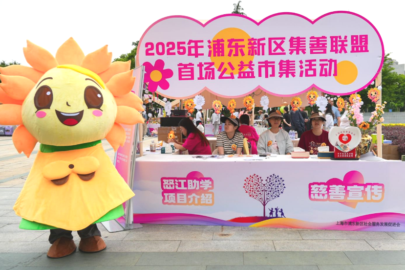 在浦东新区"集善联盟"公益市集现场,浦东福彩服务中心创新构建"购彩即公益"机制,市民每购买一张福利彩票,其金额的10%将转化为支持云南对口援建地区孩子追逐梦想的爱心善款。