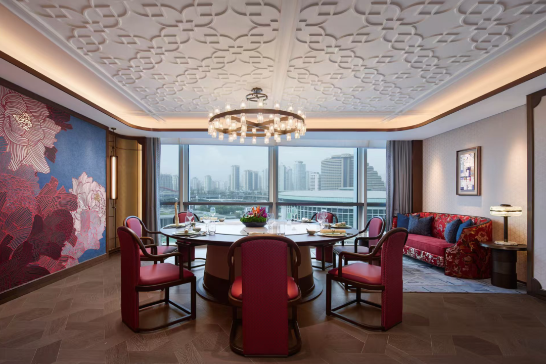 酒店不仅满足观赛需求,更提供多元配套:25米全透明恒温泳池、配备高压氧舱的健身中心,为宾客提供赛后恢复与日常锻炼空间;酒廊“玖·吧”配备超大LED屏,实时直播赛事,供应特色小食与鸡尾酒,成为球迷聚会据点;近1000平方米会议空间可承办赛事发布会,445平方米的“奥林匹亚”宴会厅以体育精神为设计灵感,适合高端活动。